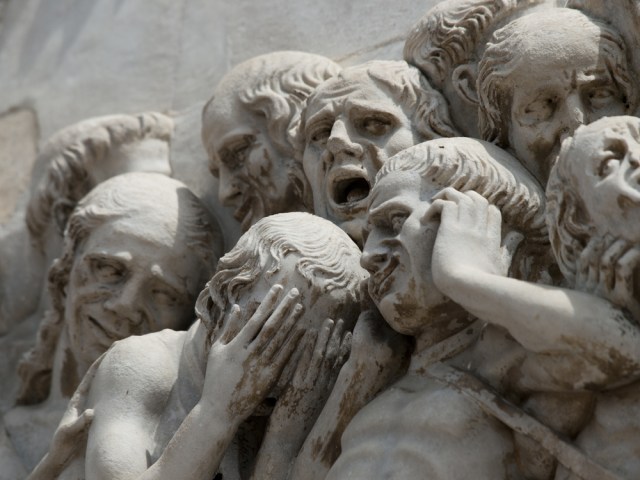 As husbands and wives walked desperately by,